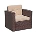 【Stylish Design】This armchair combines classic espresso brown rattan with versatile beige fabric that is simple, stylish, and will not go out of style; it’s perfect for your yard, porch, backyard, balcony, poolside, garden and other outdoor space