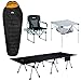 Bundle: 1 * Heavy Duty Compact Camping Folding Mesh Chair with Side Table and Handle, Cup Holder + 1 * Lightweight Stable Aluminum Folding Square Table + 1 * iClimb Super Easy Assemble Folding Cot Two Heights Ultralight Compact Heavy Duty with Carry Bag for Adults Camping Backpacking + 1 * 3M Thinsulate Insulation Mummy Sleeping Bag with Compression Sack Ultralight Compact Warm Washable 3 Season