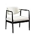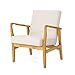 Wide, comfortable cushions are a hallmark of this mid-century inspired arm chair. Easy-care ivory upholstery and reversible back cushions help keep this piece looking fresh. A hardwood frame connects to tapered wood legs and lends structure to the foam-padded cushions. High arms give additional support.