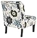 ARMLESS ACCENT CHAIR: This fashion-forward armless chair adds a cool vibe to your home with a floral pattern in neutral hues of ivory, blue, charcoal and brown