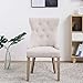 Built to last long, Ideal for any kitchen or bar area with charming textured Beige ivory linen upholstery, these classic-style Dining Chairs are made of Distressed Washed oak finish solid wood legs, tufted well-padded seats and stud Bronze nailhead trim on a durable frame. Well-padded seats and versatile fabric on a durable frame. These classic-style bar chairs with its quilted upholstery, curved edges and highly recommended.