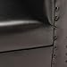 The frame is made of solid mango wood and adds to its retro style, and the upholstery is finished with rivets for an industrial look and feel