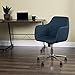 UPHOLSTERED DESK CHAIR: This modern desk chair is perfect for a home office with the blue, stain resistant upholstered seat and back cushions that blend in with any design taste