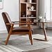 Mid-Century Modern Accent Chair: The upholstered chair has a natural wood grain feel with a light brown finish and classic faux leather fabric for a distinctive mid-century modern style.