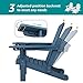 ADJUSTABLE BACKREST- The unique advantage of this Adirondack chair set is that the backrest has three reclining positions, allowing you to sit up straight or recline comfortably. It combines a recliner and an Adirondack chair in one, providing a comfortable seating option for relaxation and enjoyment of the outdoors.