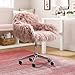 Comfy Seating Experience - Faux Fur Desk Chair: The pink faux fur upholstery provides you with a comfy seating experience. Made by skilled craftsmen, the seat itself is lined with fine faux fur for a soft, glam feel, while high-density foam fill provides extra padding. Soft to touch shaggy faux fur upholstery make this makeup chair more modern and stylish. The plush vanity chair can be put on the living room/bedroom as home office chair/ makeup stool/children remote learning chair.