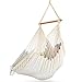 STURDY & STYLISH DESIGN — Handmade bohemian chic hammock style swing brings style and unique touch to any home —The rope and swing design features macramé net chair pattern with braided style fringe tassels — Made of 100% handmade cotton — Hand wash — Protect from outdoor elements — 265 pound weight capacity — Measures approximately 28" L X 21" W X 52" H