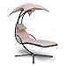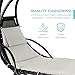 COMFORTABLE AND VERSATILE SWING CHAIR: With a foam-covered armrest, a canopy and pillow, and a chaise seat tempered with a steel cantilever, our product is both comfortable and versatile. These features allow you to add or remove specific product.