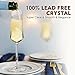 MADE FROM PREMIUM LEAD-FREE CRYSTAL: Crafted with premium lead-free crystal, these crystal champagne flutes feature thinner walls that offer a balance of superior clarity and strength. The laser cold-cutting process delivers an even, beadless, chip-resistant edge on this masterfully-crafted crystal champagne glass. Sleek, clear glass showcases your favorite bubbly beverages.