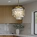 Capiz Shell Chandelier: Features with hundreds of natural capiz seashells and brass gold frame which brings a touch of class. It will make a delicate sound when the wind is blowing and creates an immersive coastal feeling(Capiz shell can be shipped when is damaged in the transit )