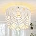 Indoor Chandelier Application💡: This rustic bead chandelier light fixture is design for Living room, Bed room, Dining room, Foyers, Restaurant etc. This white beaded chandelier lighting is designed to work on all ceilings including flat, sloped, slanted or vaulted ceiling.