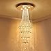 🤩【Amazing Ceiling Lamp】---Mirror polished Canopy, First Class Quality Transparent Bling Glass Crystal, Made by Hand 100%, Beautiful rainfall design crystal pendant light, sparkles from every angle, Gorgeous Light Fixture!!!