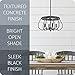 STATEMENT PIECE: Stunning pendant light features a texture cement style and complementary black finish in a refined bowl style. Its unique, open design allow for bright light to shine through while fitting styles like rustic, industrial and farmhouse