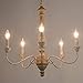 ELEGANT FARMHOSUE CHANDELIERS: White distressed wood finish makes the French Country chandelier a timeless feeling of old times.