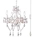 Pink Plug In Chandelier: The white finish and glistening pink acrylic crystal of this entrancing 4-light swag chandelier will give your home a burst of stylish energy. The shimmering light will capture your imagination and will ensure a wonderful evening alone or with guests. The in-line on/off rocker switch is conveniently located near the plug making it easy to find and easy to use.