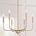 FARM DESIGN: Made of metal, the Brass Chandelier features a candle-style construction, a modern twist on traditional design, and a vertical and fitted bulb arm, this eye-catching fixture emits a lot of light and adds an elegant look to your space