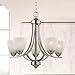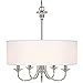 ☞Design: Large 5-light chandelier featuring a white linen drum shade, adjustable height and an metal nickel finish.Illuminate your home with this bright, beautiful ceiling light.