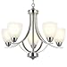 IDEAL FOR entryways, dining rooms, foyers, kitchens, and more, this traditional with modern elements chandelier has a satin nickel finish with cylinder frosted glass shades