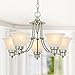 COMPATIBLE WITH MOST STANDARD MEDIUM BASE BULBS - Farmhouse chandeliers for kitchen dining light fixture comes with a 5 clear glass shade. Dimmable when used with compatible dimmer switch