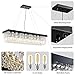 Chandelier Material: This kitchen island rectangle chandelier is made of polished chrome stainless steel ceiling base, not easy rust; K9 crystals, clear and shining. Assembly Required.