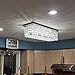 [Perfect Fits] This focal centerpiece is 37” in length X 13” in width X 17” in height, making its size perfect over your Kitchen Island and rectangular dining table. The canopy comes in 9” in length X 4 1/2” in width X 1” in height, designed to fully cover the standard size of the junction box. It comes with 2 X 59-inches height adjustable chains giving you the option of adjusting height between 77” to 22” from ceiling to bottom based on your need.