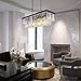🏡【DINING ROOM CHANDELIERS】: This rectangular dining room chandelier is using top K9 chandelier crystals which have great transmission of light and the rectangle light fixture is using stainless steel and has a smooth and luster chrome surface. This rectangle chandelier is perfect for dining room, kitchen island, living room.