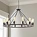 RUSTIC STATEMENT PIECE: Stunning foyer pendant chandelier features a two toned, open frame with textured black and wood style metal in a walnut finish. Eye catching fixture shines brightly in any home/office, fitting styles like Spanish, vintage & antique