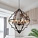 RUSTIC STATEMENT PIECE: Stunning foyer pendant chandelier features a two toned, open frame with textured black and wood style metal in a walnut finish. Eye catching fixture shines brightly in any home/office, fitting styles like Spanish, vintage & antique