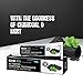 Activated charcoal toothpaste works to polish and clean, whiten by removing surface stains and freshen breath with fresh mint, spearmint, and peppermint