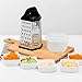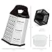 Sharp Blades on 4 Sides - Coarse, medium, and fine grating surfaces, and slicing surface.Sharp stainless-steel shredding holes on 4 sides allow for efficient grating of a variety of foods, including cheese, vegetables, chocolate, and more