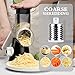 🧀🧀High Efficient Cheese Grater: Crank 1 circle means 12 cuts by traditional. You will SAVE much TIME to prepare you meals. The cheese shredder is perfect for cheese, hash brown, potatoes, veggies, radish, carrot, zucchini, cucumbers, nuts, cookies and more. Need special attention are: soft cheese, barrel with slicing or Coarse Shredder. Hard cheese, use Fine Shredder.(In particular, it works especially well with cheese)