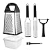 4 GRATER IN ONE4 GRATER IN ONE: Box Grater has 4-Sided Stainless Steel grater like Coarse Shred, Medium Shred, Fine Shred/Zester and Slicer, all in one convenient tool. Quickly prep an array of foods like cheese, potato, squash, zucchini, carrots, lemons and cucumbers. Multi-functional with a comfortable handle that gives you total control.