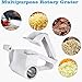 <ul><li><strong>Versatile blades Cut faster</strong>: This rotary grater is the perfect addition to any kitchen. Finish your food preparation with 3 interchangeable blades and makes slicing, shredding and grinding easily with one simple gadget you can shorten the food prep time by 70%.</li></ul>