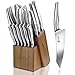 16 PIECE KITCHEN KNIFE SET: The knife block set includes 8" Chef Knife, 7" Santoku Knife, 8" Bread Knife, 8" Slicing Knife, 7" Fillet Knife, 6" Utility Knife, 3.75" Paring Knife, 4.5" Steak Knives Set of 6, Kitchen Scissors, Knife Sharpening Rod and a Wood Block. You can choose the most suitable knife according to the actual situation, there will always be a knife can come in handy.