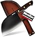 Easy To Carry Out -- The butcher knife kitchen comes with an unique leather knife sheath to protect the knife blade, beautiful and more safety, and can be attached to the belt for easy carrying when using outdoor.(There may have a smell of the leather sheath, please hang in a ventilated place for some days when you receive it.)