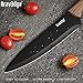 【Top Rated Chef Knife】Bravedge 8" ultra-sharp chef knife is forged at a high temperature of 850~1200°C and tempered at a medium temperature of 500-650°C, with a very sharp edge and long-term durability. The food-grade metallic paint offers a beautiful glossy to prevent the knife from rusting, corroding and sticking.