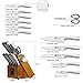 13 Pieces of kitchen knife set include 1pc 8-inch chef knife, 1pc 8-inch bread knife, 1pc 8-inch slicer knife, 1pc 5-inch utility knife, 1pc 3.5-inch paring knife, 6pcs 4.5-inch steak knife, 1pc kitchen scissor, 1pc acacia wood knife block.