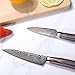 💎【DAMASCUS LASER PATTERN 】Laser Damascus pattern in our utility knife gives off a mystique from its own elegant pattern, toughness, and durability. Has Damascus pattern, extremely sharp edge that masterfully slices through fruits and vegetables like butter. Specialized divots minimize adhesion and reduces friction for a more seamless, non-strenuous cutting experience. Please imagine that your kitchen knives have more aesthetic appeal as well as sharpness and durability.