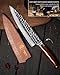[Sharp Damascus Steel Blade]: This kitchen knife is suitable for mincing, slicing and dicing. It likes heating butter when you cut with it; it is easy and accurate to cut vegetable, fruit, fish, and meat.