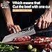 ✔【Three-layer Composite Steel】Just like a sandwich, the deliciousness is in the middle layer. Our chef's knife, the middle steel core is 90Cr15MoV, and the Rockwell hardness reaches 59± 2 HRC. It only takes one cut to cut beef, which is smooth and easy.