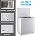 Large capacity:The 5.0 cubic foot compact freezer is designed to save more food in the kitchen. It can be used to preserve seafood, ice cream, meat, fruits, vegetables and so on . chest freezer completely meet daily storage needs for user.