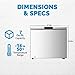【Compact Chest Freezer Dimensions】: 2.7 cubic feet free standing Chest Freezer, Measures: 20.94”(W)*21.65”(D)*32.17”(H).Compact Freezer is saving space design.Large Capacity is Great using for breast milk, meat, aquatic products, cold drinks, quick-freezing and other purposes.Perfect for Home,Dorms,Kitchen and Office.