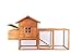 WATERPROOF AND PROTECTION: The roof and the paint on the pine wood walls protect against rainwater to outlast weather patterns. Designed for the outdoors, this wooden chicken coop and stays strong against showers. The durable iron mesh keeps chickens in and predators out, while the roof offers shade in the warm weather.