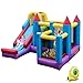 [Quality Assurance] 1) Heavy-duty puncture proof material with double to quadruple stitches for a highly durable inflatable bouncer 2) Half way hook & loop fastener opening for safe and easy access into and out of the bouncer 3) Bouncing surface made with heavy-duty commercial grade material for better bouncing fun and a durable, long-lasting bounce house 4) Strong secure 9" ground stakes 5) 6 ft Long air intake tube 6) Basketball hoop with hook-and-loop fastener connection for safety