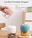 【Waterproof design&Easy Cleaning】Our DmofwHi cordless mini chopper is highly waterproof. It can be rinsed directly with water after using, the bowl and blades are detachable, with no stain residue, simply cleaning and assembly, dry storage, and ready for the next time.