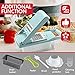 🥕Multi-functional Mandoline Slicer: This vegetable slicer contains 3 replaceable blades and a storage container. 3.5mm fine shredding blade, 7mm coarse shredding blade, and a double-sided slicing blade (2mm&4mm). Suitable for vegetables and fruits, such as potatoes, cucumbers, onions and zucchini. Tips: After the food is cut by the shredding blade and then cut by the slicing blade, the food will become granular,It is equivalent to having a vegetable Chopper perfectly.