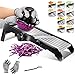 【Safety in Use】- Our mandolin slicer is equipped with a cut-resistant gloves and a food pusher. You just need to fix the vegetable on the safety pusher without worrying about your fingers. You can easily and safely cut vegetables and fruits, such as apples, pears, carrots, cucumbers and potatoes. It's a good helper for making potato chips, french fries and salads.