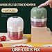 Versatile and Convenient: The chopper can chop vegetables, garlic, onion, ginger, spices, and baby food in no time. The compact design makes it easy to store and carry, so you can take it with you wherever you go. The wireless feature means you can use it anywhere without being limited by a power source.