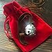 The bell measures 1 1/4” long in diameter and weighs 1.2 ounces. The bell is packaged in a soft, red velvet gift bag.