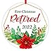 First Christmas Retired Ornaments 2022: Floral design with words " First christmas retired 2022", great retirement ornaments for christmas tree party decorations